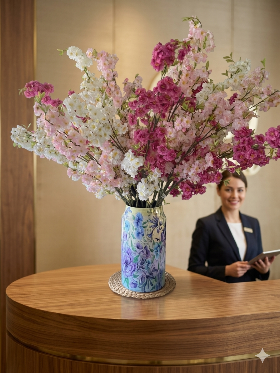 Modeva Store verrijkt het interieur van uw bedrijf, hotel of horecagelegenheid met high-end zijden bloemen die niet van echt te onderscheiden zijn. Wij vertalen uw unieke karakter naar een onvergetelijke gastvrije beleving, van majestueuze entree tot verfijnde tafelstyling. Ontdek het gemak van een altijd perfecte uitstraling: luxueus, onderhoudsvrij en volledig ontzorgd.